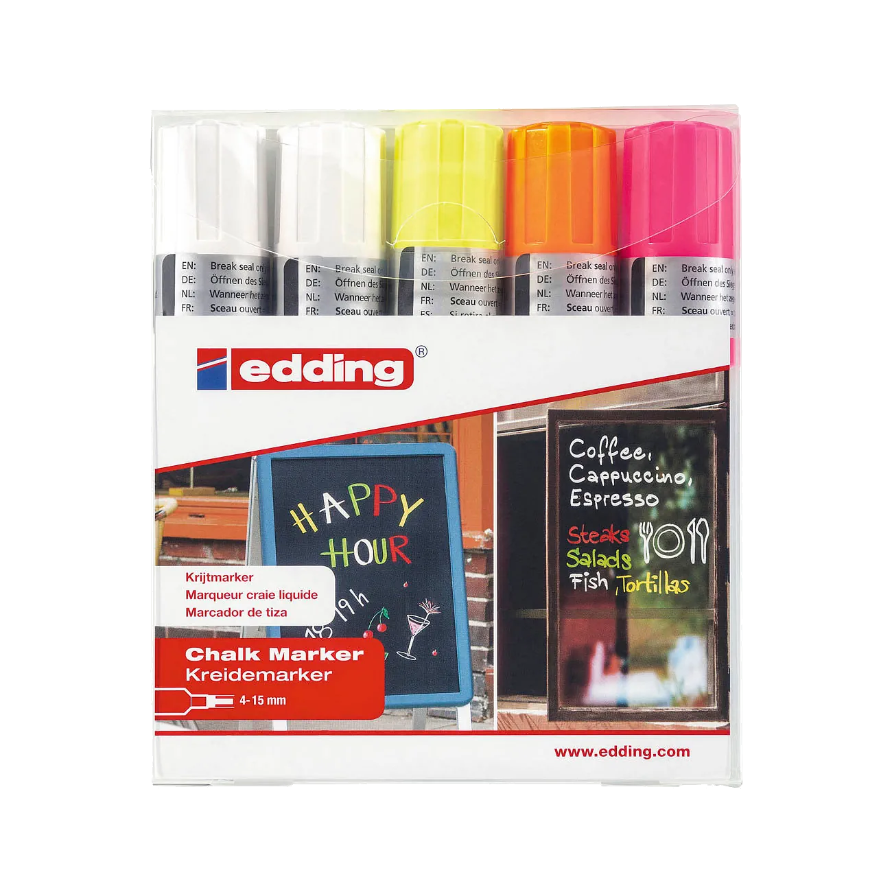 Produktinformationen "EDDING Kreidemarker 4090 4-15 mm farbig sortiert 5 Stück/Pack"