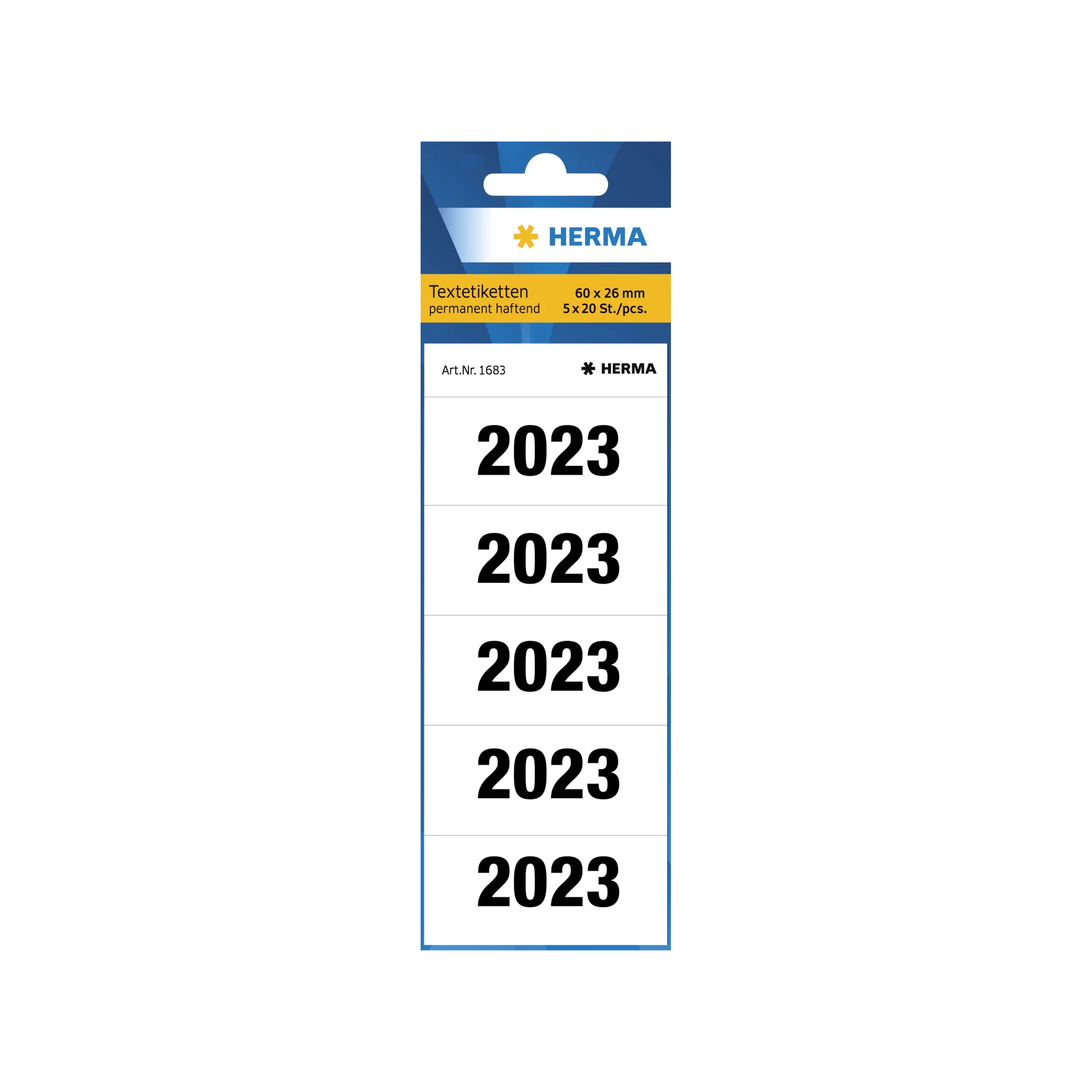 Produktinformationen "HERMA Jahresschild 2023 schwarz auf weiß 60 x 26 mm (B x H) 100 Stück/Pack"
