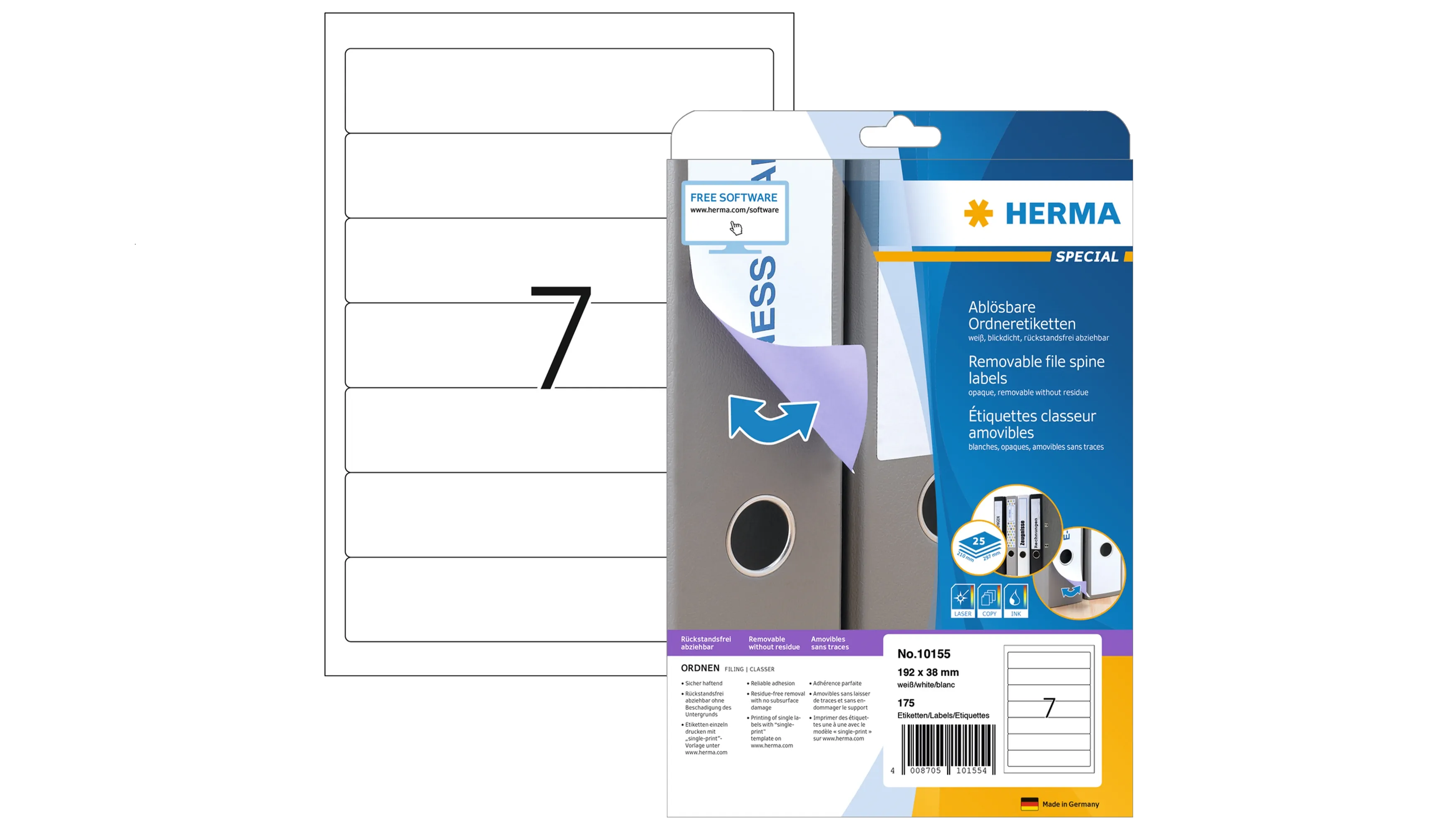 Sicher haftend, auch bei häufigem Ordnergebrauch, rückstandsfrei wieder abziehbar ohne den Ordner zu beschädigen, problemlos repositionierbar und mehrfach wieder haftend. Alte Ordnerbeschriftungen scheinen nicht durch. Kostenlose Softwarelösungen: http://www.herma.de/software. Störungsfreie Verarbeitung durch Rundum-Sicherheitskante und optimale Planlage.