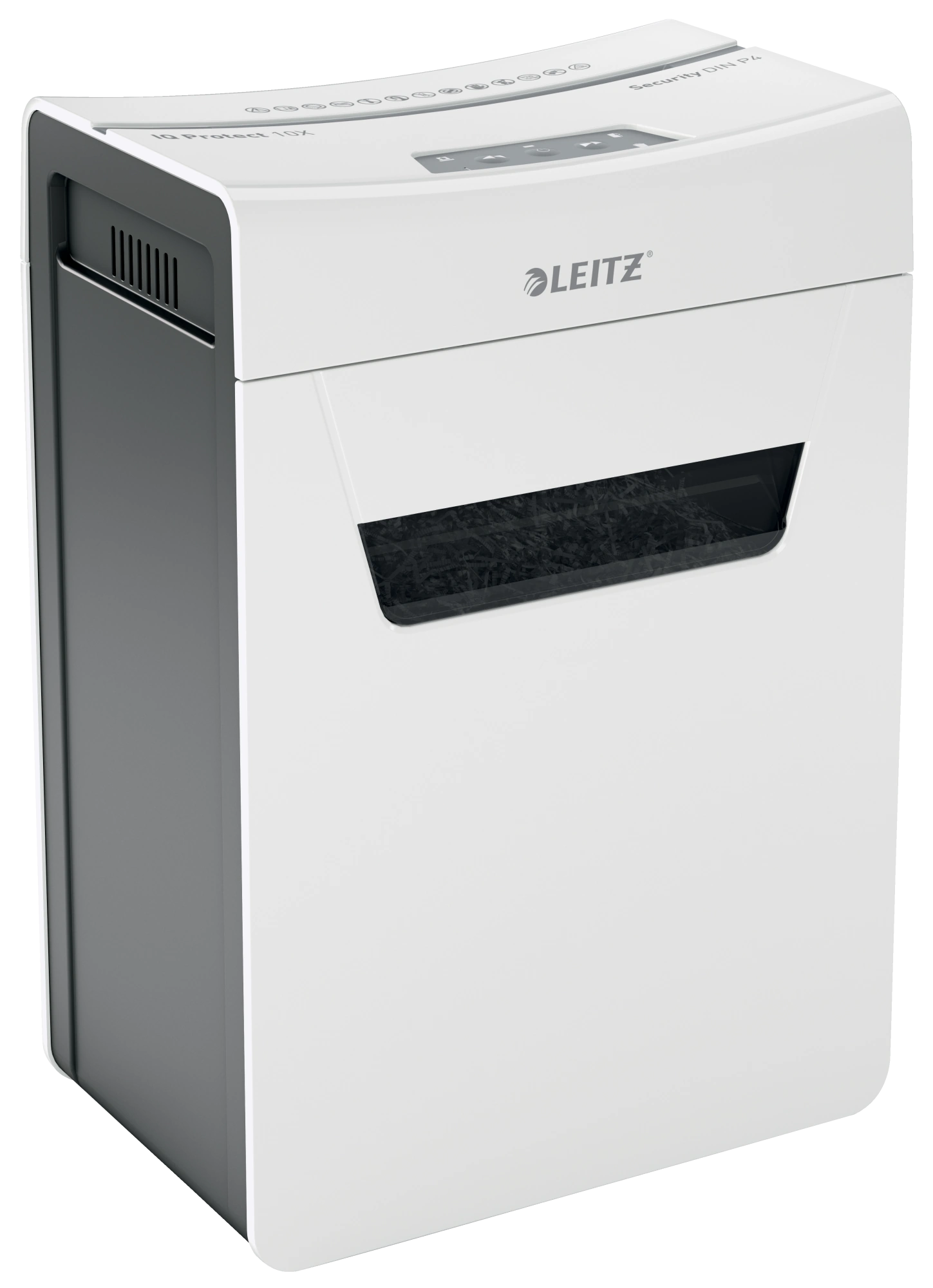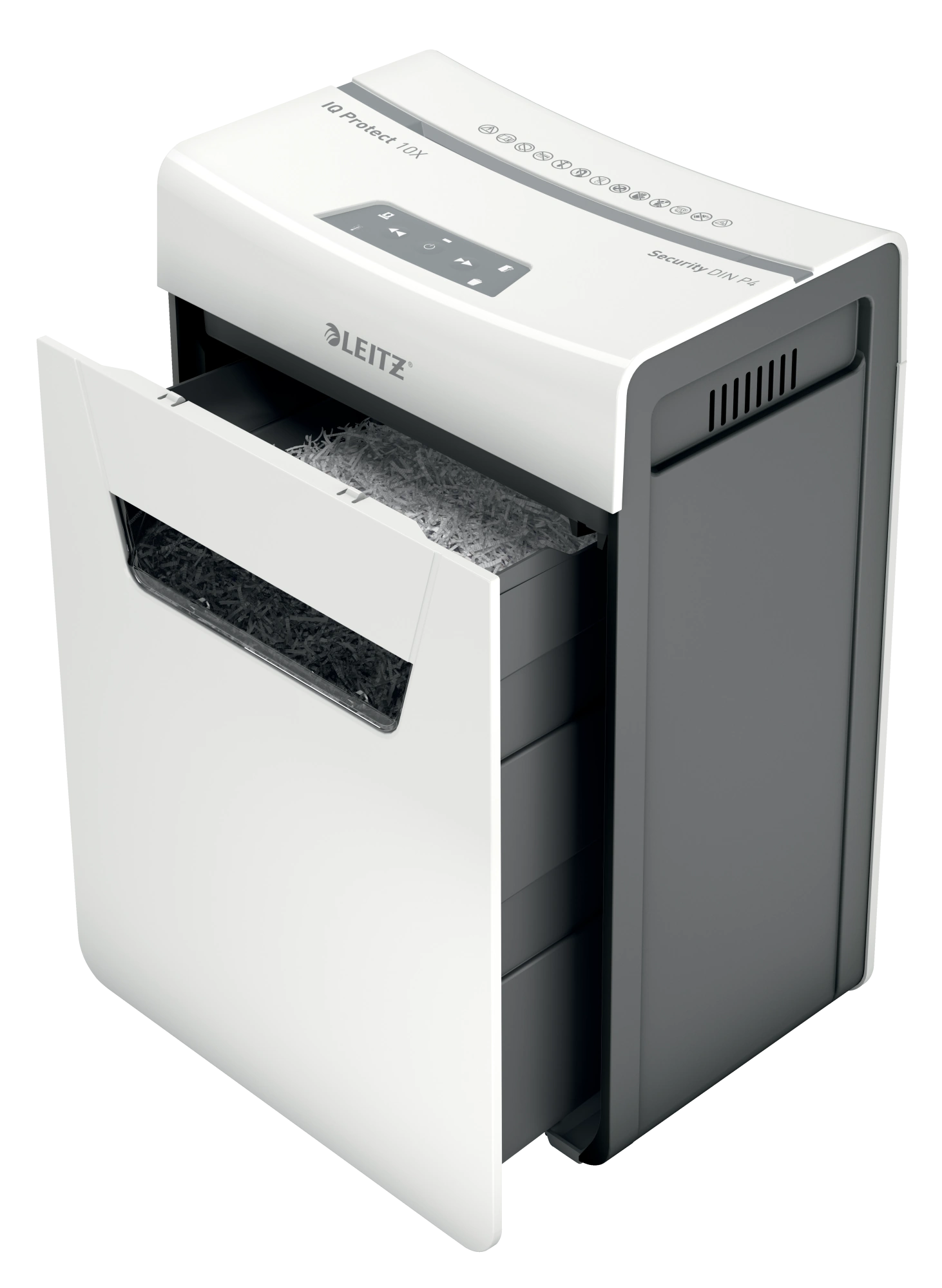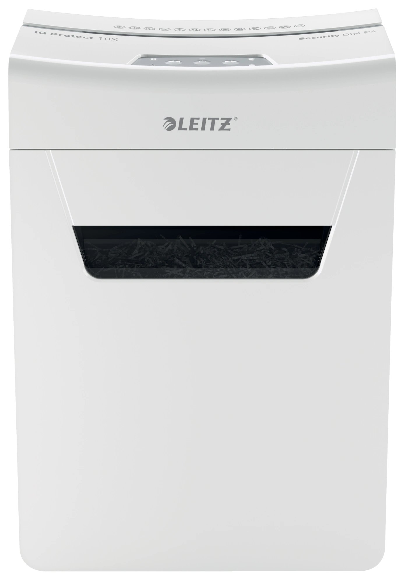 Produktinformationen "LEITZ Aktenvernichter IQ 10X Protect Premium Partikelschnitt P-4 weiß"
