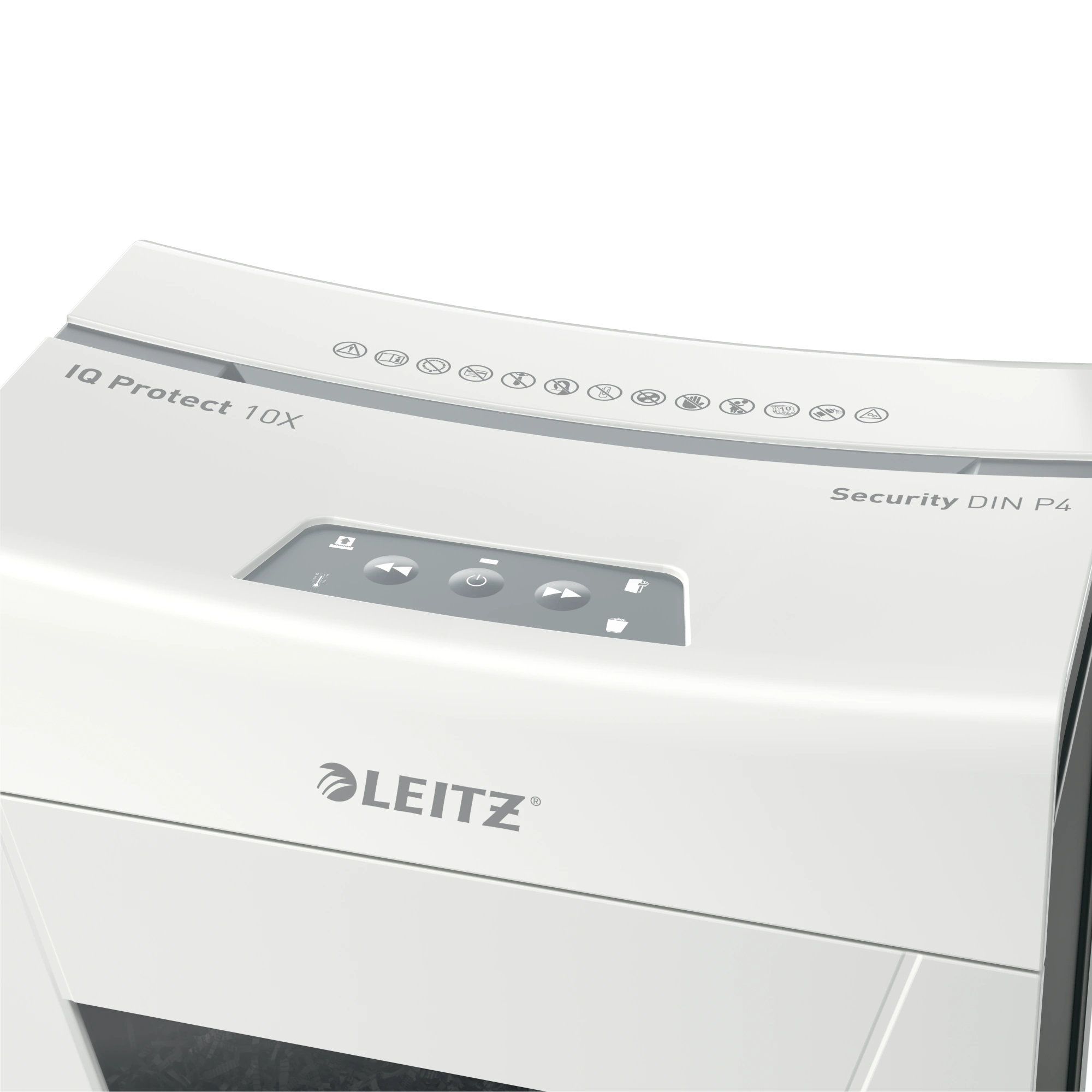 LEITZ Aktenvernichter IQ 10X Protect Premium Partikelschnitt P-4 weiß