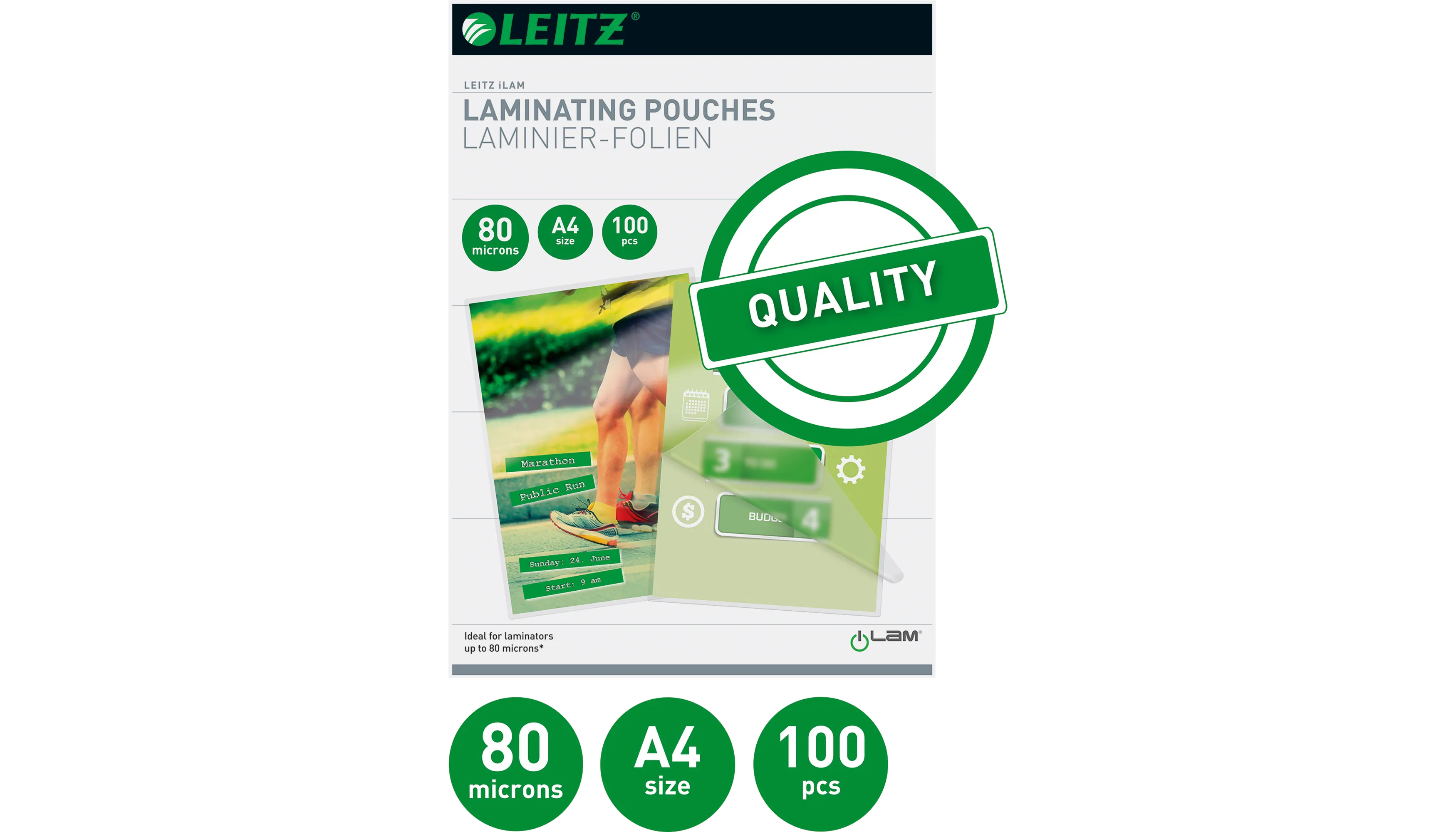 LEITZ Laminierfolie DIN A4 glanzend transparent 80 micron 100 Stück pro Packung