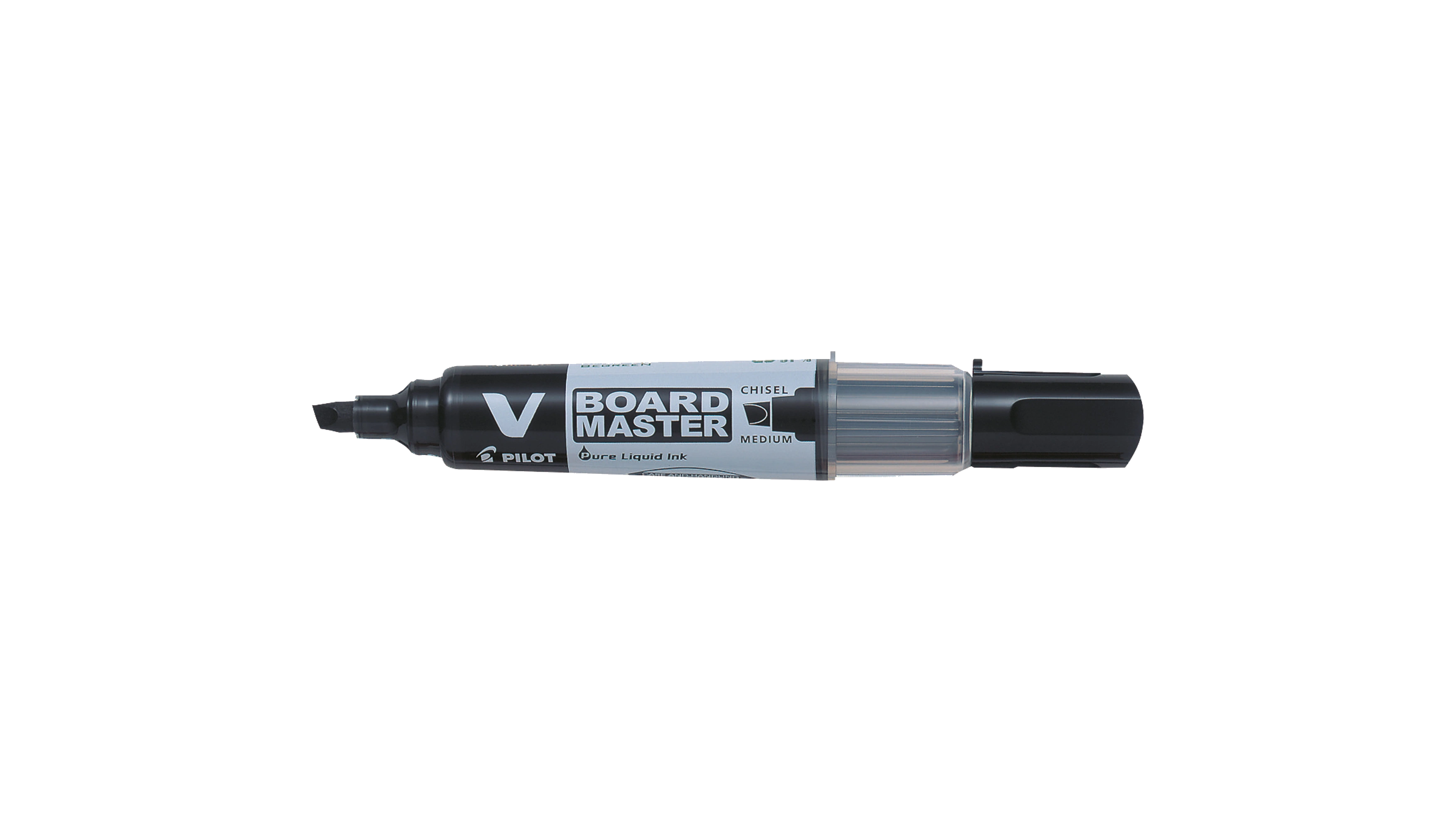 Der V-Board Master ist für alle Whiteboards aber auch Flipcharts geeignet. Seine Tinte auf Alkoholbasis verwischt nicht und lässt sich auf Whiteboards trocken wieder abwischen. Seine langlebige Faserspitze ist keilförmig und besteht aus druckstabilen Polyester-Fasern. Ausgestattet mit V- und TPF-System liefert der V-Board Master mit Keilspitze höchste Schreibqualität mit intensiv leuchtenden Farben ohne zu verblassen sowie einen kontinuierlichen Tintenfluss bis zum letzten Tropfen. Es ist kein Anpumpen nötig! Der Whiteboardmarker ist trocken abwischbar.