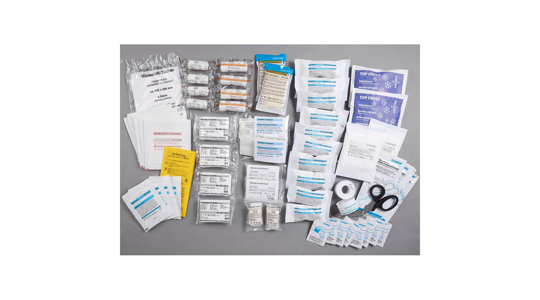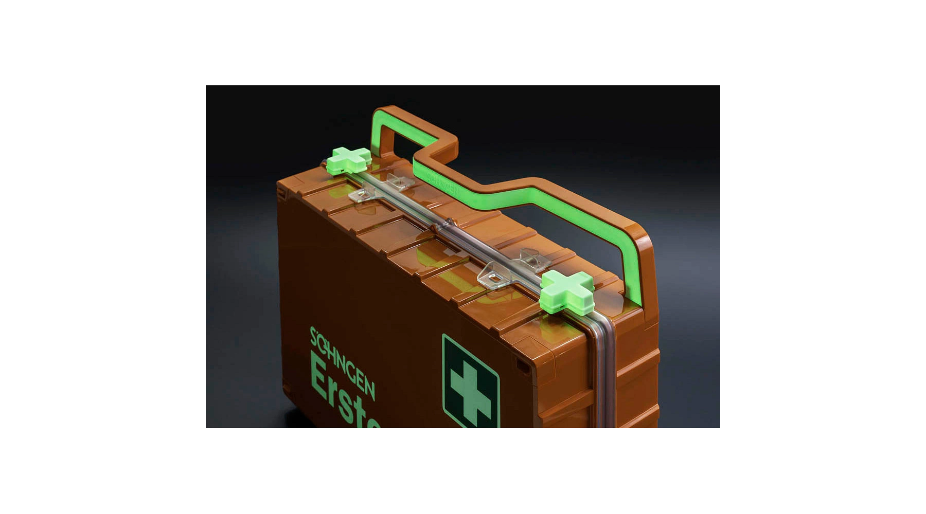 Moderner Erste Hilfe Koffer mit lang nachleuchtenden Permalight®-Elementen. So finden Sie den Koffer im Notfall auch in absoluter Dunkelheit. Durch die einfache und schnelle Handhabung ist der DYNAMIC-GLOW sehr anwenderfreundlich. Seine übersichtliche und großzügige Inneneinteilung bietet für jede Füllung ausreichend Platz und dank der 90°-Stopp-Arretierung sowie der patentierten Wandhalterung haben Sie einen schnellen Zugriff auf alle notwendigen Produkte. Acylglasscheiben bleiben von alleine mittig stehen durch "Balancing technology". Kofferhälften können geteilt werden. Inhalt kann mit einer Hand entnommen werden. Koffer ist sehr leicht zu öffnen durch "Cross-rotation technology". Koffer kann von jeder Position auf dem Boden einfach zu sich gezogen werden. Sterile Verbandstoffe von SÖHNGEN® sind mit dem Herstellungsdatum und einem Haltbarkeitsdatum von 20 Jahren ab Herstellung versehen.