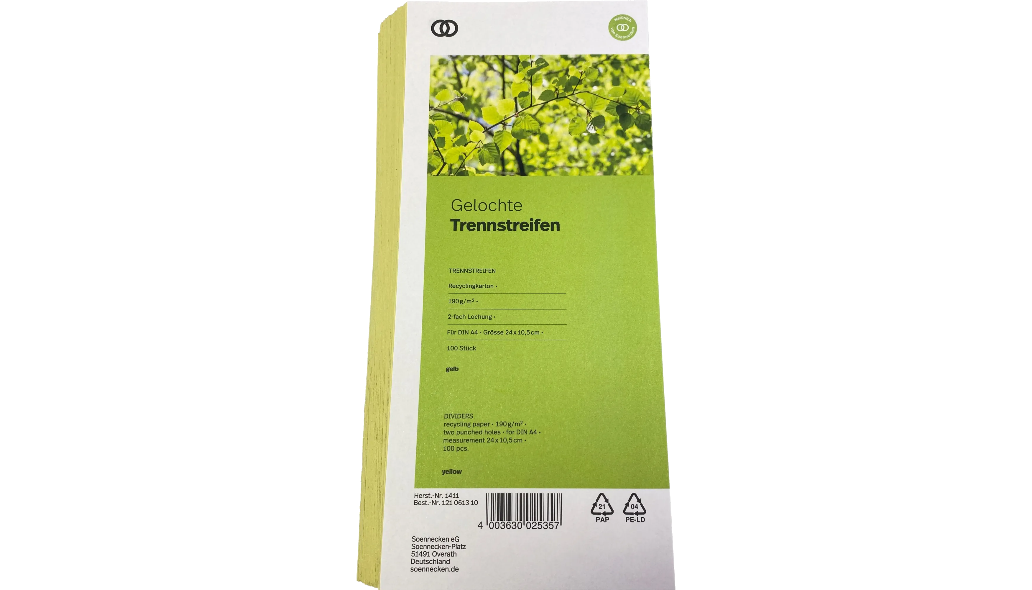 Produktinformationen "SOENNECKEN Trennstreifen oeco 100 Stück/Pack gelb"