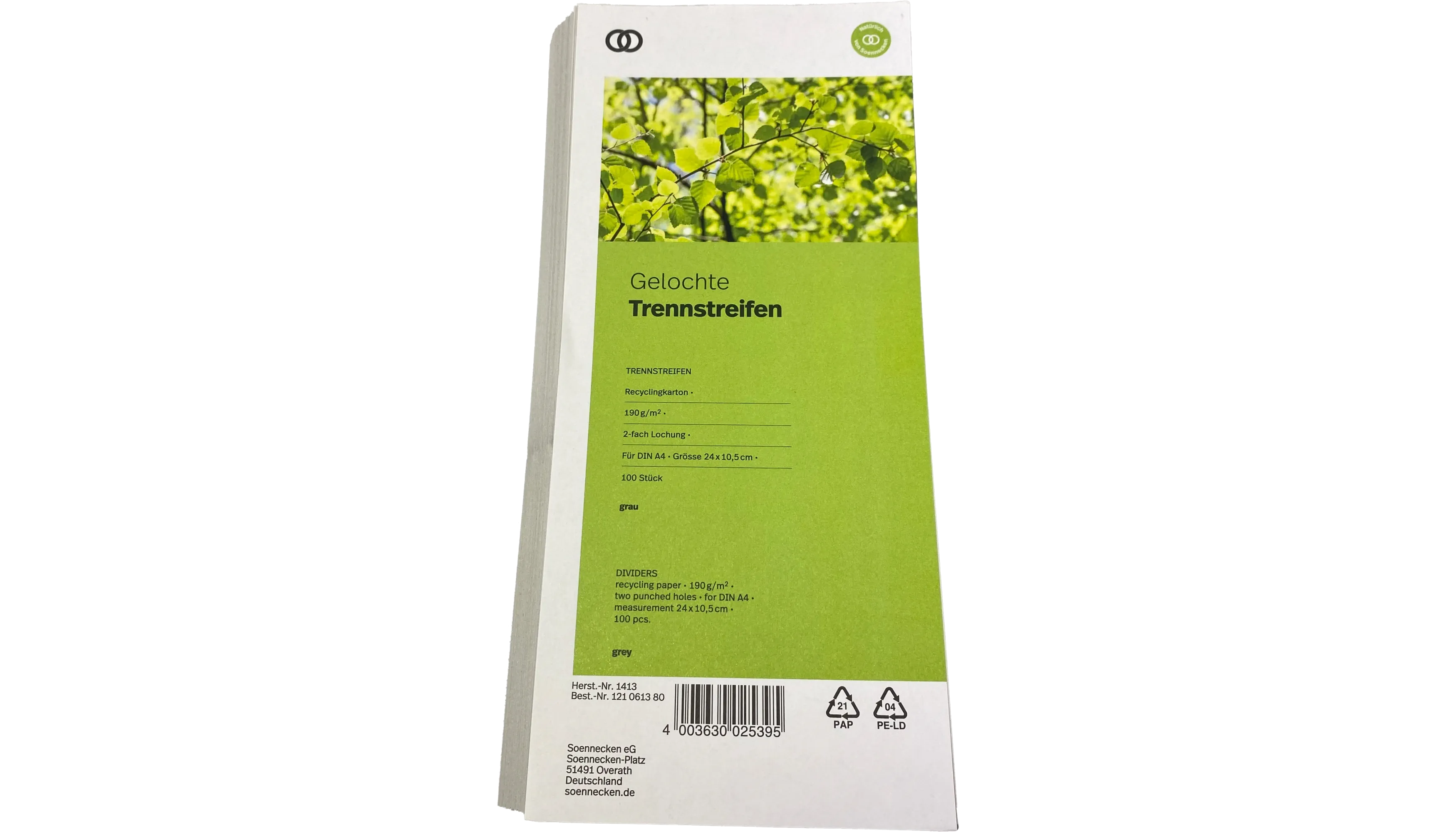 Produktinformationen "SOENNECKEN Trennstreifen oeco 100 Stück/Pack grau"