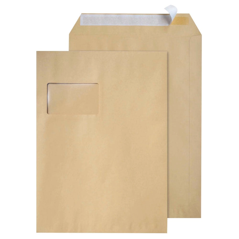 STEINMETZ Versandtaschen DIN C4 mit Fenster 90 g/m² braun haftklebend 250 Stück/Pack