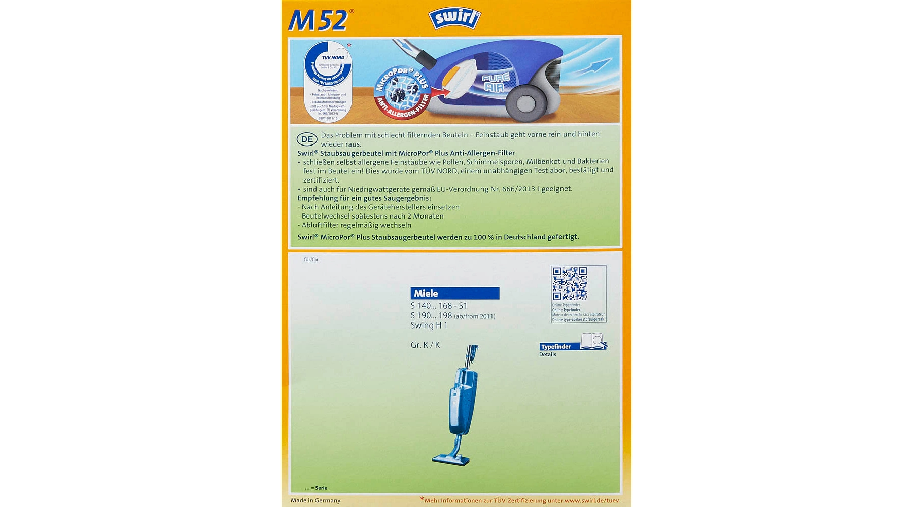 SWIRL MicroPor® Plus Staubsaugerbeutel M 52 1Pa=4Stück
