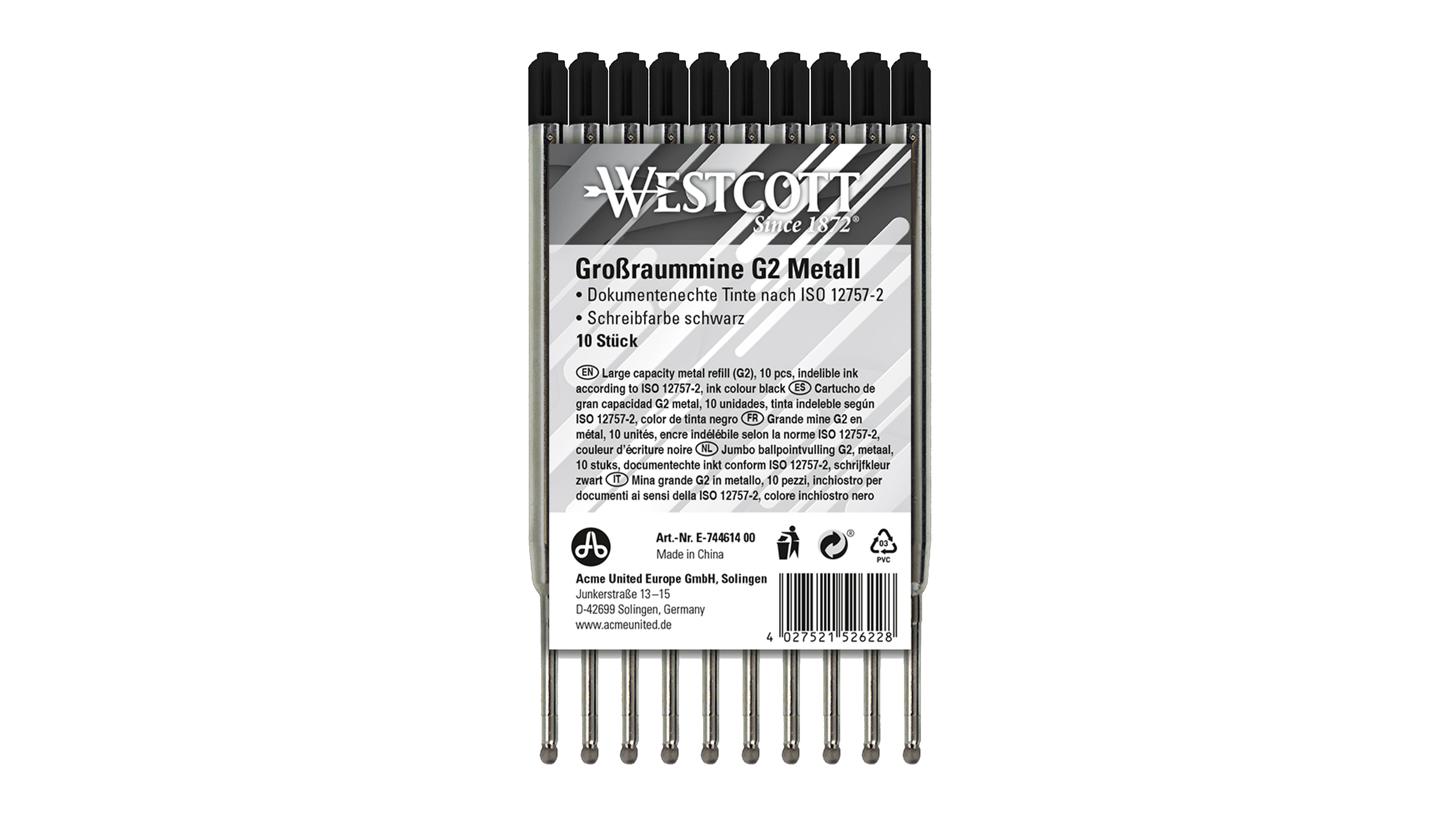 Produktinformationen "WESTCOTT Großraummine G2 M dokumentenecht 10 Stück/Pack schwarz"
