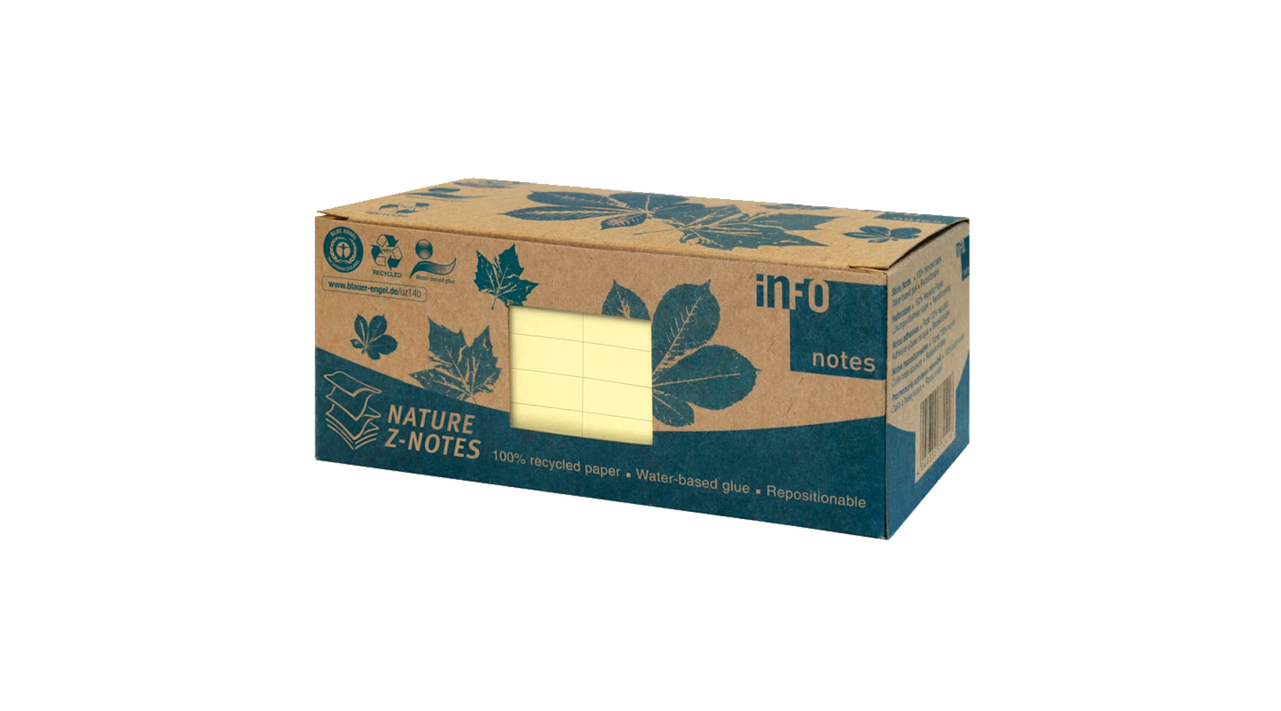 Für noch mehr Umweltfreundlichkeit haben wir bei der Schutzverpackung der INFO NATURE NOTES komplett auf den Einsatz von Folie verzichtet. Stattdessen dient eine Faltschachtel aus Karton, welcher aus 100 % Recyclingpapier besteht, als Schutz vor Verschmutzung oder Beschädigung. Ein rundum umweltfreundliches Produkt.