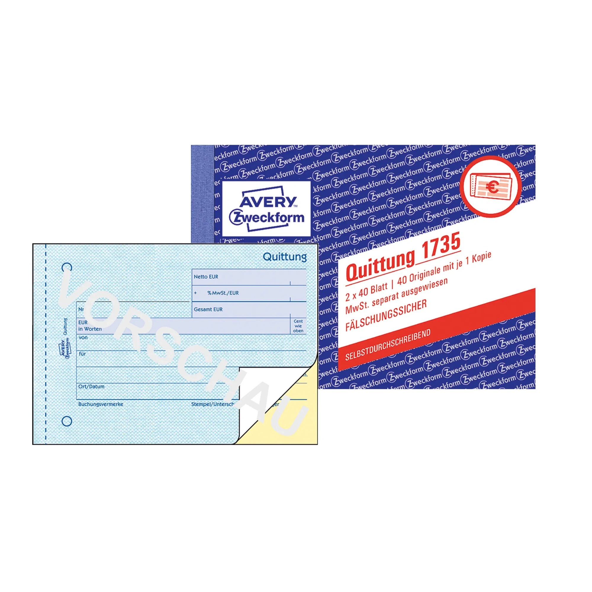 AVERY ZWECKFORM Quittung DIN A6 quer 2 x 40 Blatt
