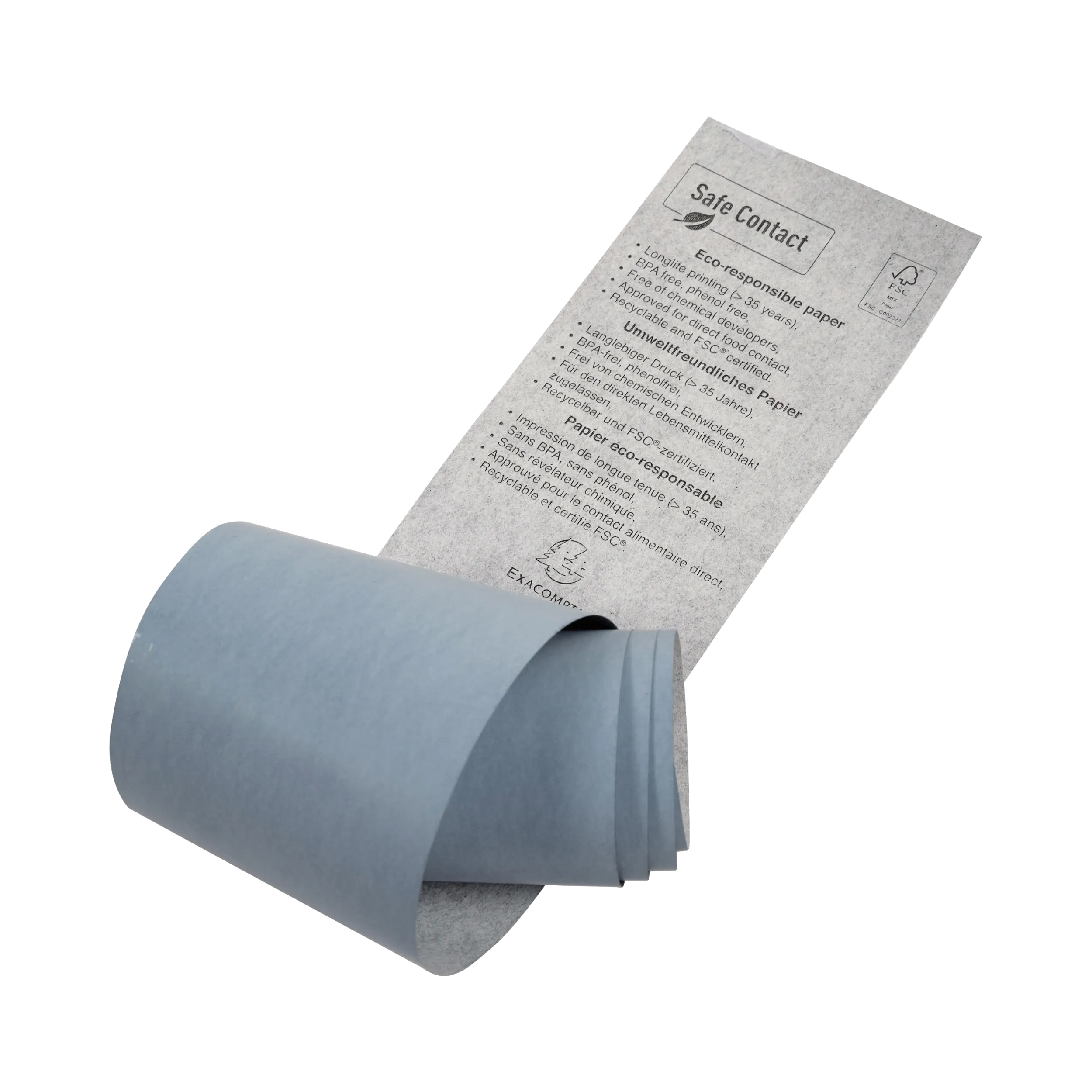 Patentierte Innovation: Der Druck erfolgt durch eine physikalische Reaktion und nicht durch chemische Reaktion wie bei Standard-Thermopapieren. Die Thermorollen Safe Contact sind frei von chemischen Entwicklern und sind somit gesundheitlich unbedenklich und sogar für den direkten Kontakt mit Lebensmitteln zugelassen. Die Thermorollen werden aus einem leicht bläulichem Papier hergestellt, das beständig gegen Wärme, Sonnenlicht oder Feuchtigkeit ist und somit einen langanhaltenden Druck garantiert: die Texte auf den Bons bleiben mindestens 35 Jahre lesbar. Umweltfreundliches Papier und recycelbar zusammen mit dem Papierabfall.