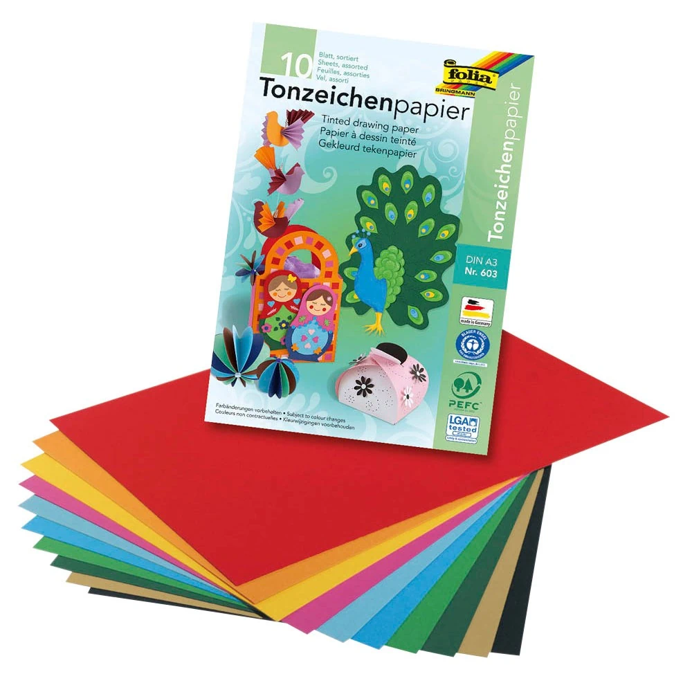 FOLIA Tonpapier DIN A3 130 g/m² farbsortiert 10 Blatt/Block