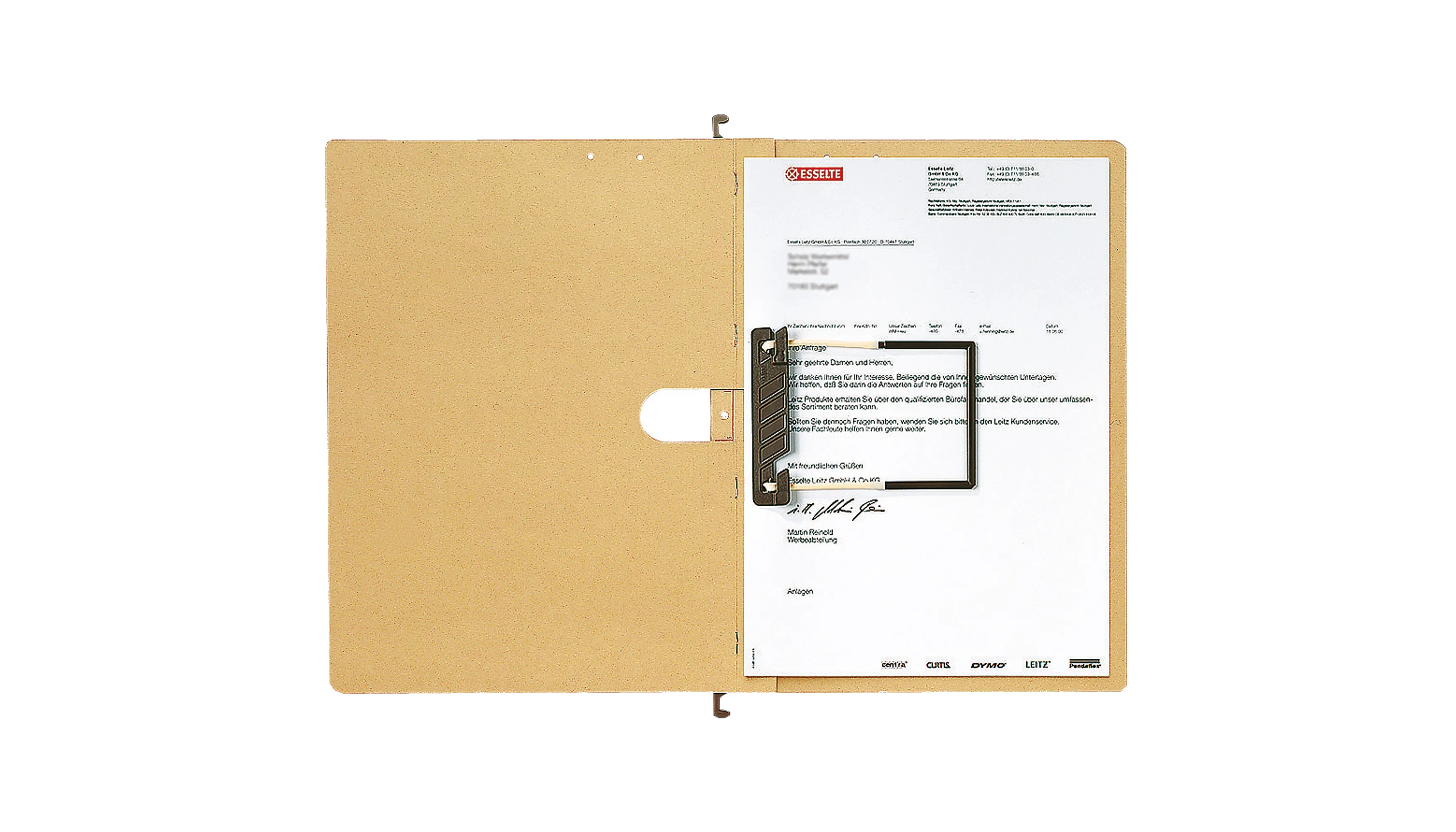 Hängehefter für die geheftete Ablage von Einzelakten. Hängeschiene mit kunststoffummantelten Hängenasen, Daumenausschnitt und Aufreihband.