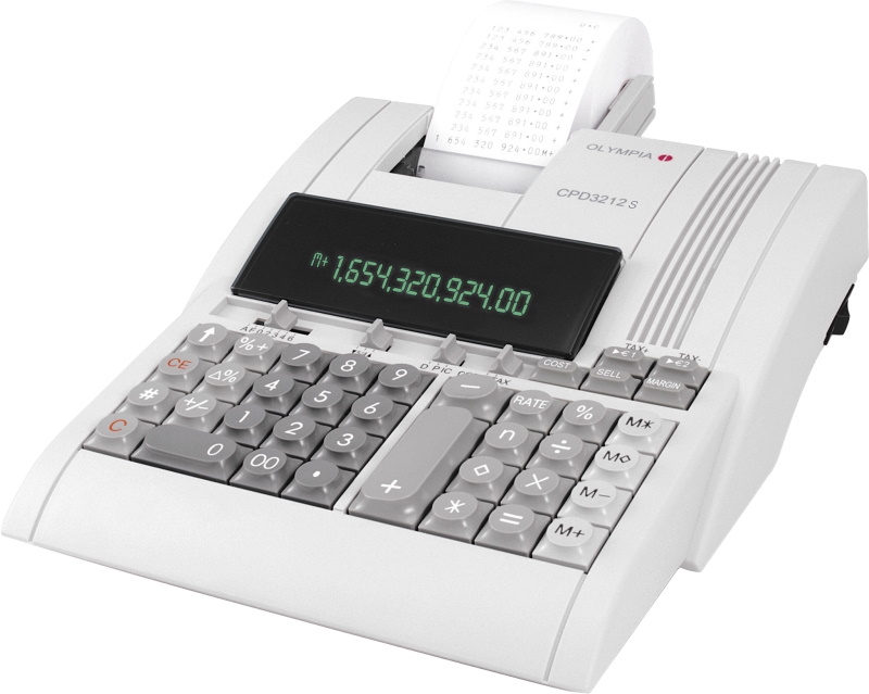 OLYMPIA Tischrechner druckend 12-stellig Netzbetrieb weiß