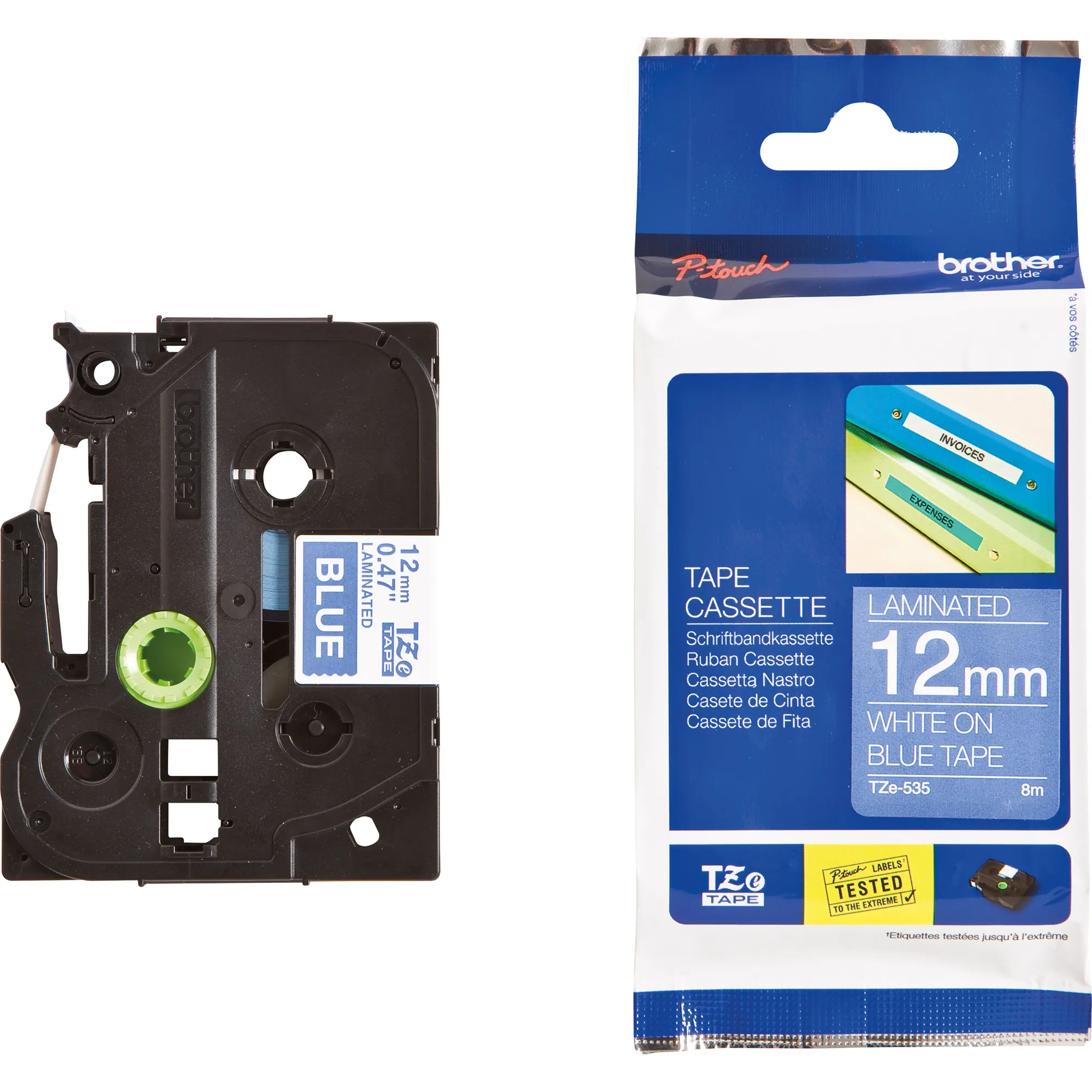 P-TOUCH Schriftbandkassette 12 mm x 8 m weiß auf blau laminiert