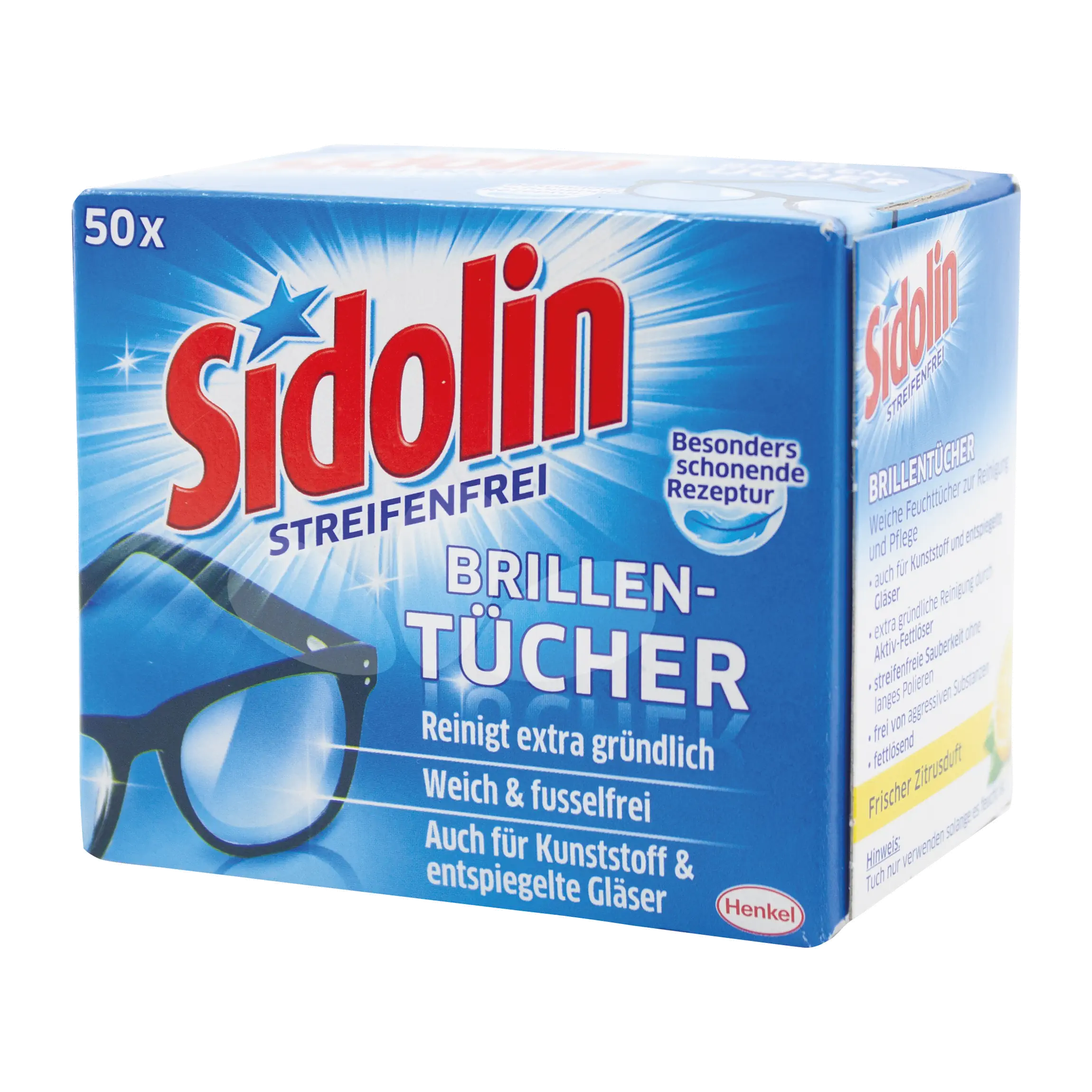 Das Spezial-Tuch ist besonders flexibel, damit Sie Nasenbügel und andere schwer zugängliche Stellen leichter erreichen. Sidolin Brillentücher sind extra schonend, sodass Sie nicht nur alle hochwertigen Brillengläser und Sonnenbrillen, sondern auch Gestelle aus Kunststoff putzen können. Probieren Sie Sidolin Brillentücher mit Aktiv-Fettlöser auch für optische Geräte wie Kameras, Mobiltelefone, PC-Bildschirme (außer LCD) oder Autospiegel und andere entspiegelte Gläser.