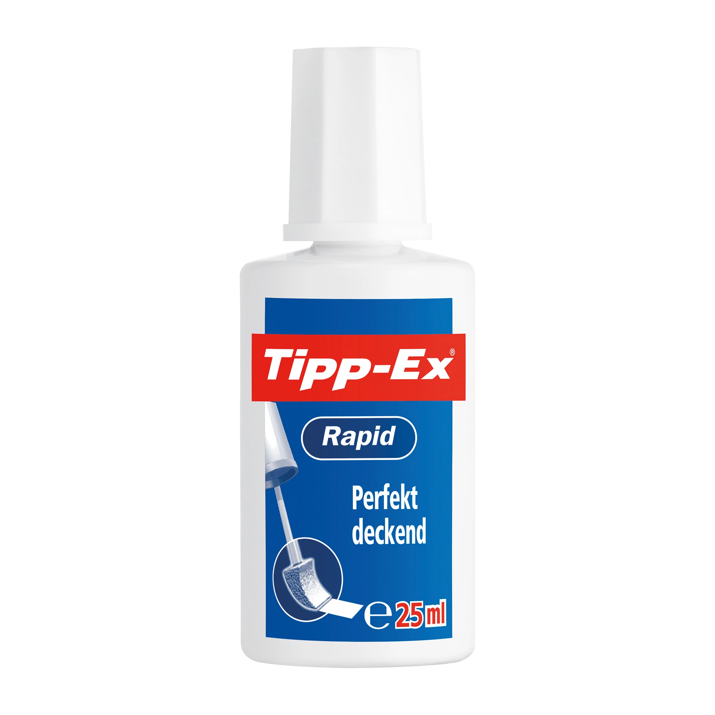 Tipp-Ex® Rapid. Deutschlands meistverkauftes Korrektur-Fluid. Bestens geeignet für große Flächen und kleine Details.