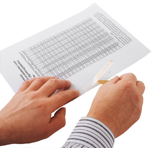 Für Heftrandverstärkungen (Zeichnungen, Plänen usw.). Innovative Klebeabdeckung, dadurch leicht entfernbar.
